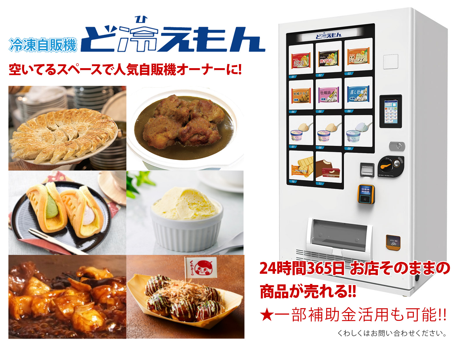 ラーメン以外にも、餃子やカレー、コロッケからお惣菜まで、最近では有名スイーツ店の商品も冷凍自販機の商品にラインナップ。自販機もオリジナルデザインが施せるのでPR効果も抜群です。