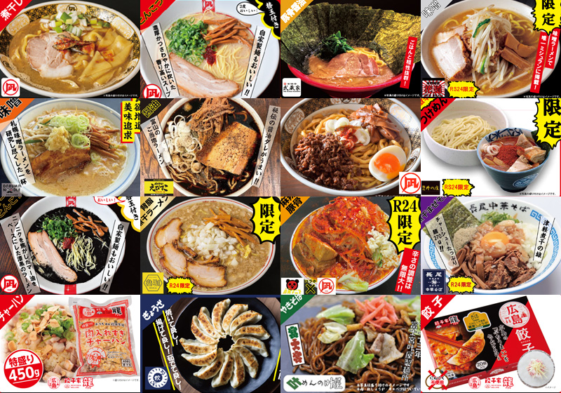 全国の有名店から集めた数十種類のラーメンや餃子の数々